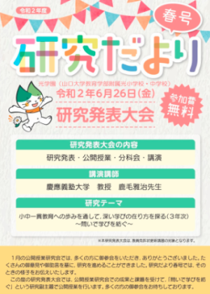 | 21/01/25 20/12/16 21/01/06 21/01/21 国語科(田中)トピックス:「公開授業研究会について」 21/01/15 国語科(有田)トピックス:「公開授業研究会について」 21/01/14 体育科(田中)トピックス:「公開授業研究会について」 21/01/08 附属光小トピックス:「冬休み明け全校集会」 21/01/08 学校だより「光ふぞく1月号(web版)」 掲載 21/01/07 理科(宮﨑)トピックス:「公開授業研究会について」 21/01/07 外国語科(石津)トピックス:「公開授業研究会について」 21/01/06 音楽科(門田)トピックス:「公開授業研究会について」 21/01/05 道徳科(久保田)トピックス:「公開授業研究について」 21/01/05 理科(赤星)トピックス:「公開授業研究会について」 21/01/05 家庭科(坂本)トピックス:「5年生ミシン開き」 20/12/24 総合的な学習の時間(大塚)トピックス:「クリスマスと正月どちらを残す?」 20/12/16 算数科(山本)トピックス:「仕掛けと活動」 20/12/08 食育(野村)トピックス:「季節の味覚」 20/12/08 算数科(兼安)トピックス:「簡単な1㎡のつくり方」 20/12/03 社会科(千々松)トピックス:「社会のひみつ教え部屋」 20/12/03 保健(酒谷)トピックス:「どこで,どんなけが?」 20/12/01 11月の給食献立表 掲載 20/11/24 図画工作科(池内)トピックス:「いっしょにおさんぽ」 |